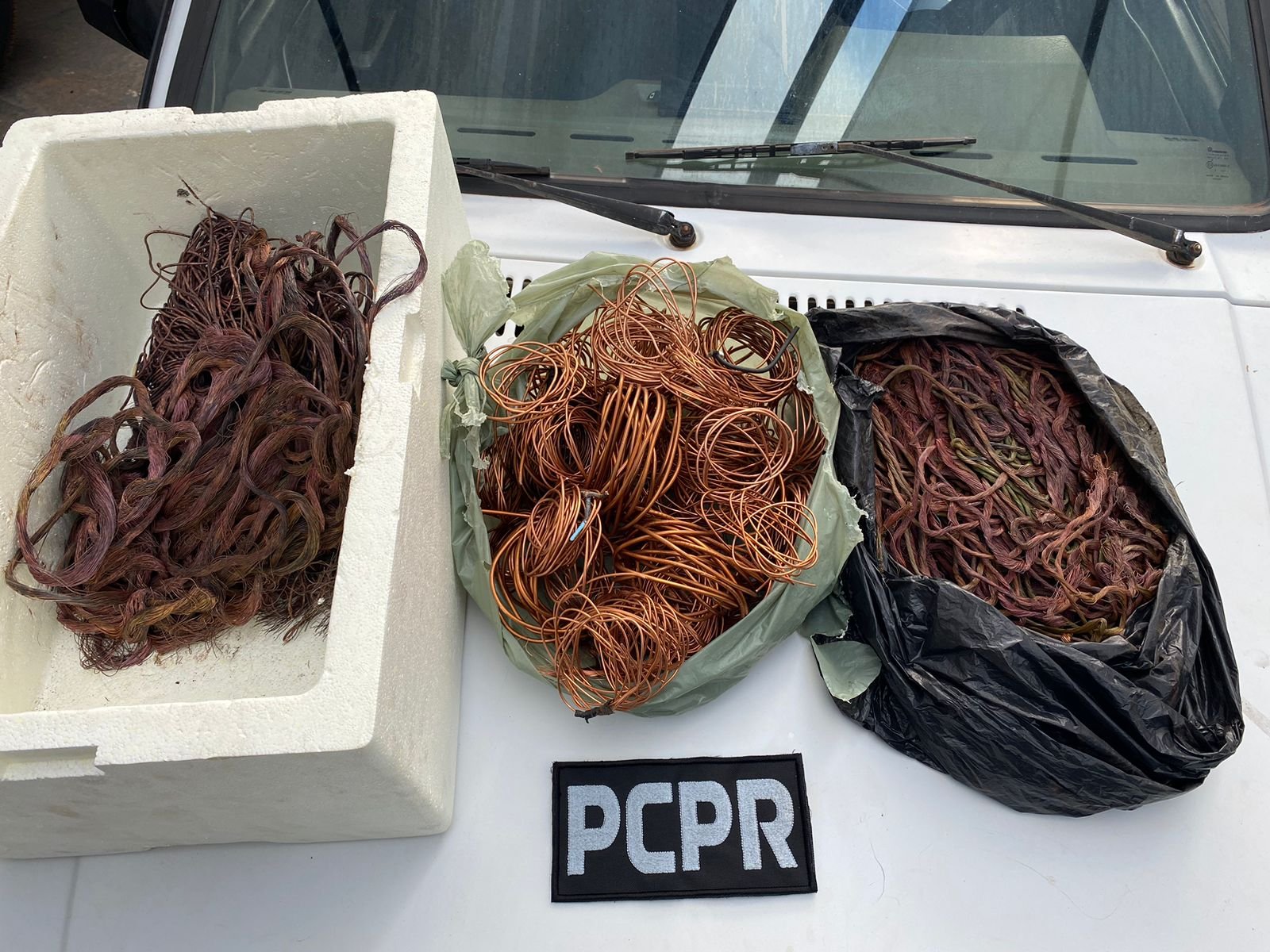 Durante uma abordagem da polícia civil a um veículo Gol, na Avenida Orlando Tortola, em Paiçandu, investigadores localizaram diversos fios de cobre de origem duvidosa, pesando 18kgs. No carro estava três pessoas, que foram conduzidas a delegacia. O motorista, que é um menor e outro adolescente foram ouvidos e liberados. O carro ficou apreendido por estar com débitos do Detran e por ser conduzido por uma pessoa não habilitada.