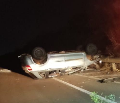 De acordo com as informações, o motorista, de aproximadamente 20 anos, perdeu o controle da direção, e o carro acabou capotando, parando no sentido contrário da via dupla.