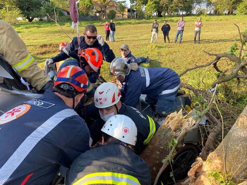 As vítimas estavam em um Ford Fusion, quando o condutor perdeu o controle da direção e bateu contra uma árvore às margens da rodovia. Com o impacto da colisão, o motorista de 40 anos morreu no local. Outros dois ocupantes sofreram ferimentos gravíssimos e ficaram presos às ferragens.