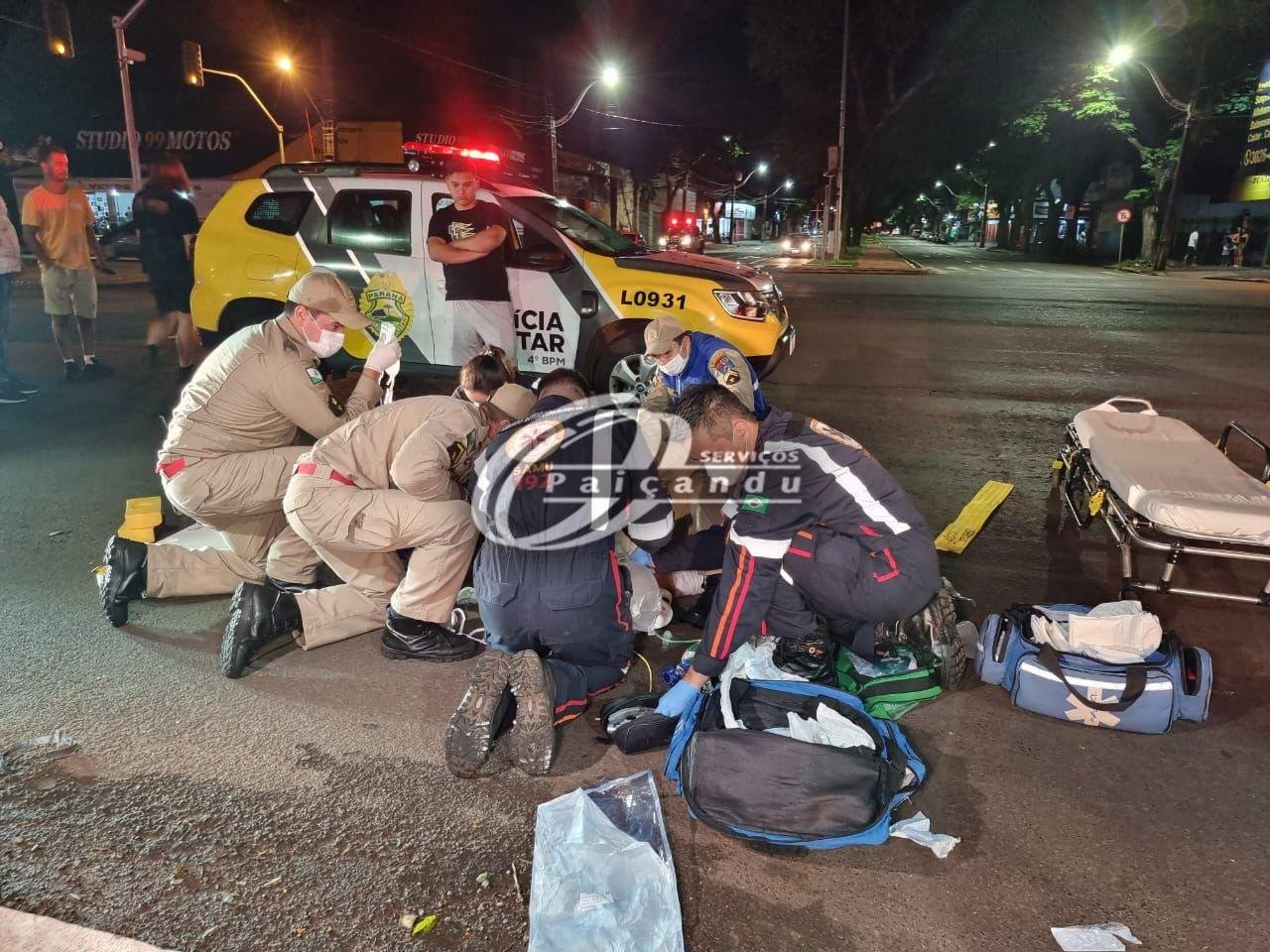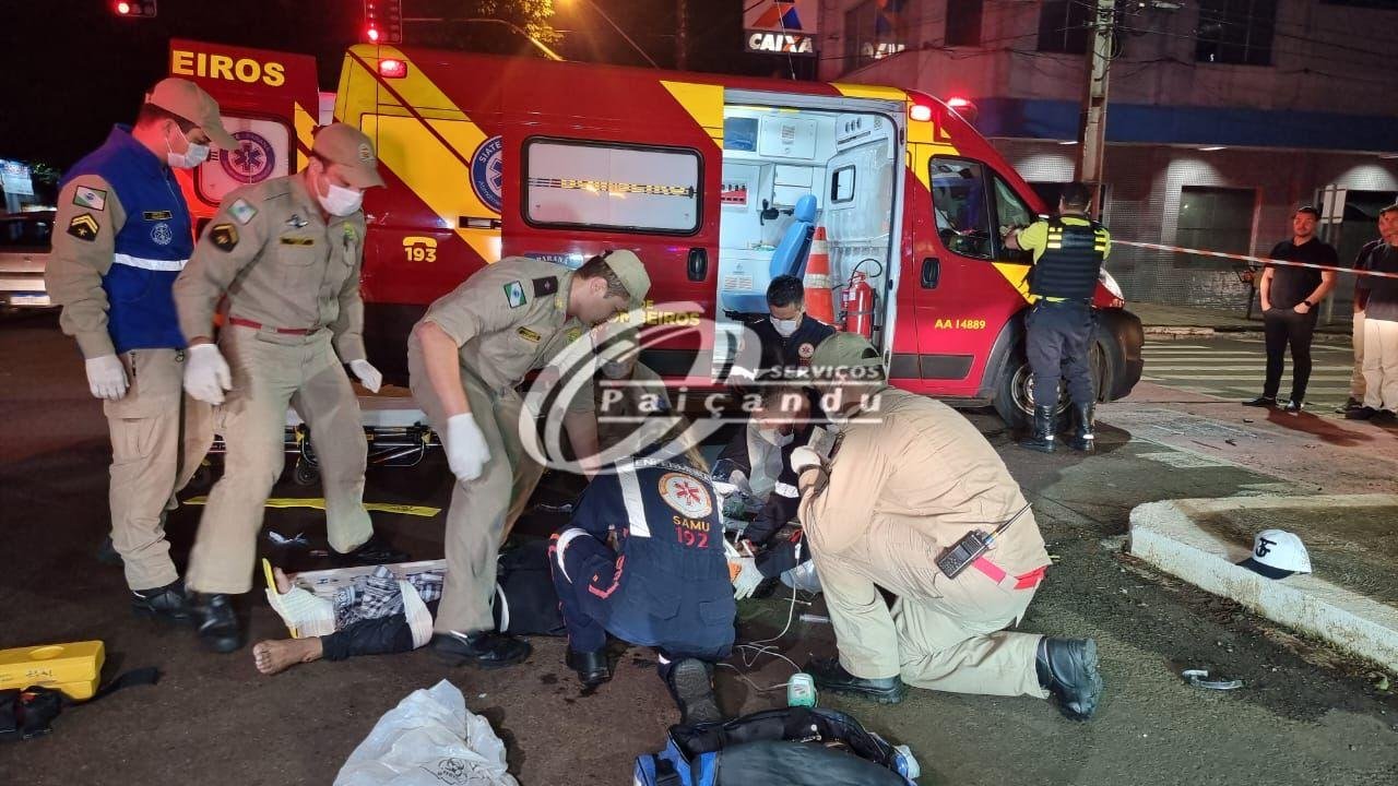 Acidente violento – Câmera registrou atropelamento em Maringá . O pedestre precisou ser intubado no local