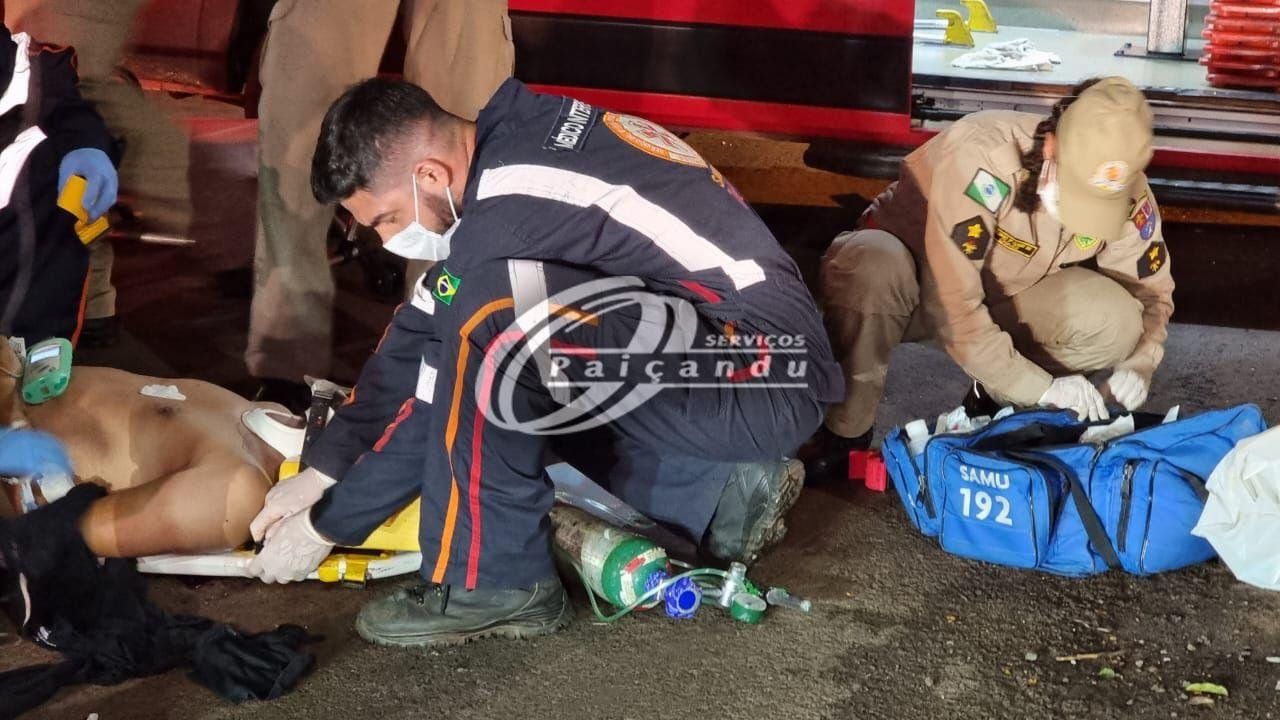 O acidente mobilizou socorristas do Corpo de Bombeiros e a equipe médica do Serviço de Atendimento Móvel de Urgência (Samu).