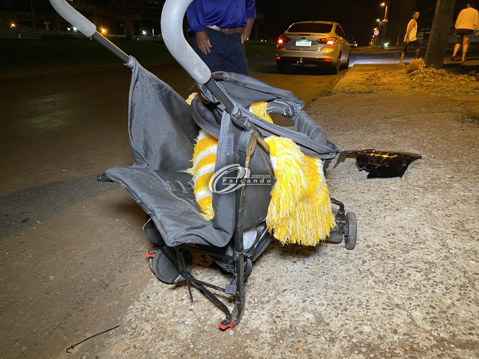 Um veículo atropelou uma criança em um carrinho de bebê, e o motorista se evadiu do local.
