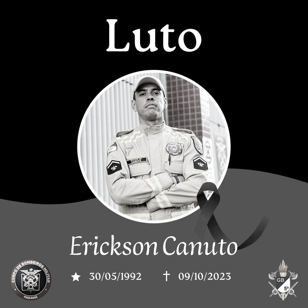 Faleceu nesta madrugada (09) em Ortigueira, o Soldado Erickson Ignacio Alves Canuto, 31, bombeiro militar formando no último Curso de Formação de Soldados do 5ºGB, atualmente lotado no 2ºSGB/5ºGB.