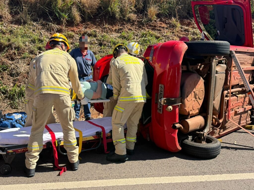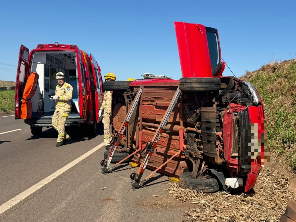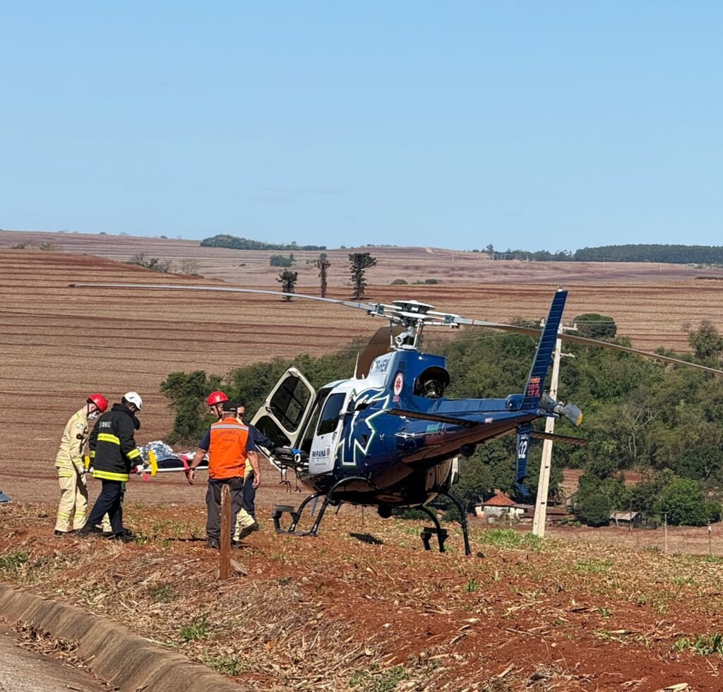 Com o impacto, o carro capotou às margens da rodovia. O motorista saiu ileso, mas a passageira sofreu ferimentos e precisou de atendimento médico. Equipes do Corpo de Bombeiros e do SAMU prestaram socorro à vítima, que foi transportada de helicóptero (Saúde 06) até a Santa Casa de Maringá.