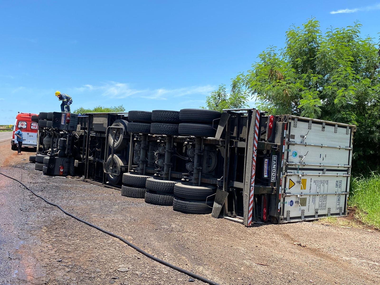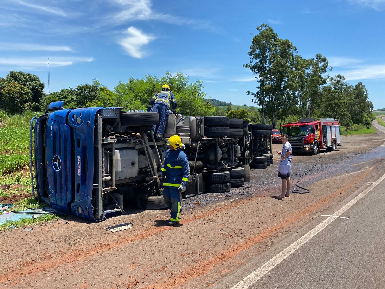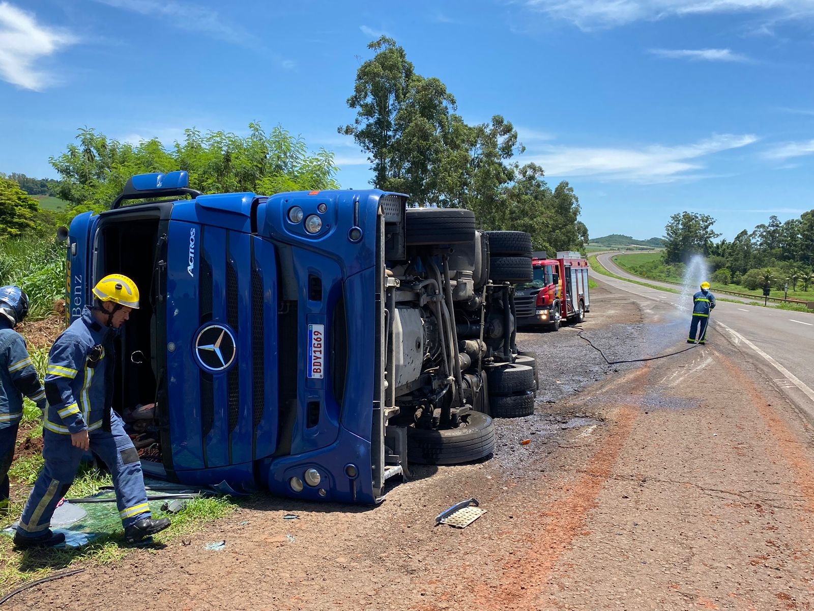 O profissional do volante, relatou que sentiu que o veículo puxou para direita e ele não pode evitar o tombamento.
