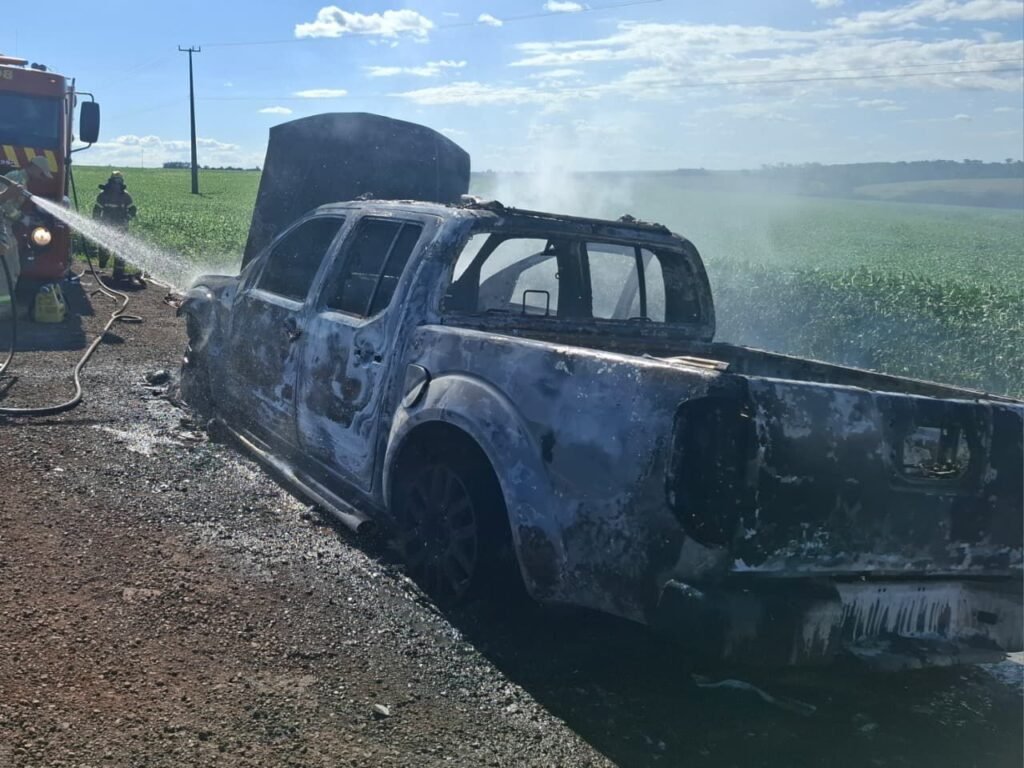 De acordo com as informações, uma Nissan Frontier trafegava no sentido Maringá a Cianorte quando, em determinado trecho da rodovia, o veículo começou a pegar fogo. O condutor conseguiu sair a tempo e não houve registro de feridos.