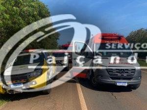 Motociclista fica ferido após colisão com carro de Paiçandu na ponte do Rio Ivaí, na PR-317