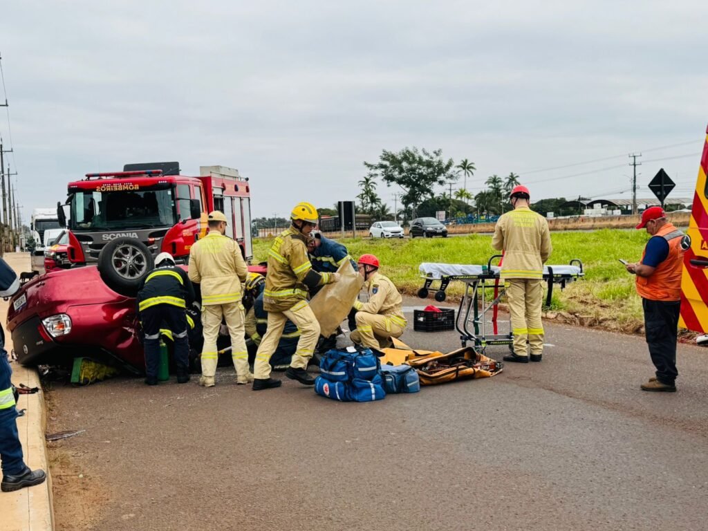 Imagens de câmeras de segurança registraram o acidente e mostram o momento impressionante em que o carro capota várias vezes.