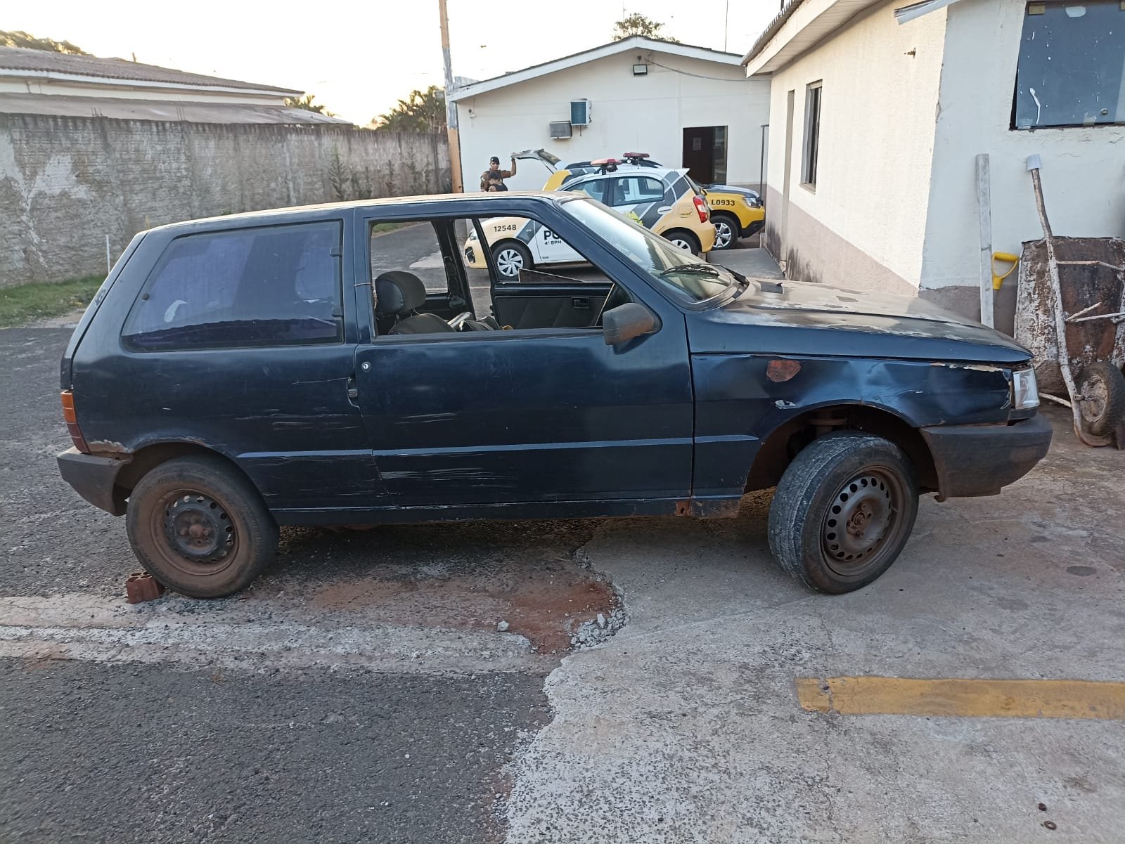 A equipe da polícia militar em patrulhamento na tarde desta quinta-feira (20) em Paiçandu, se deparou com um Fiat/Uno trafegando no Jardim Itaipu, sem a placa dianteira. Na abordagem ao consultar placa traseira e chassi, os policiais se certificaram o que o veículo estava com queixa de furto. O carro foi furtado na Zona 07 em Maringa, em outubro de 2022.