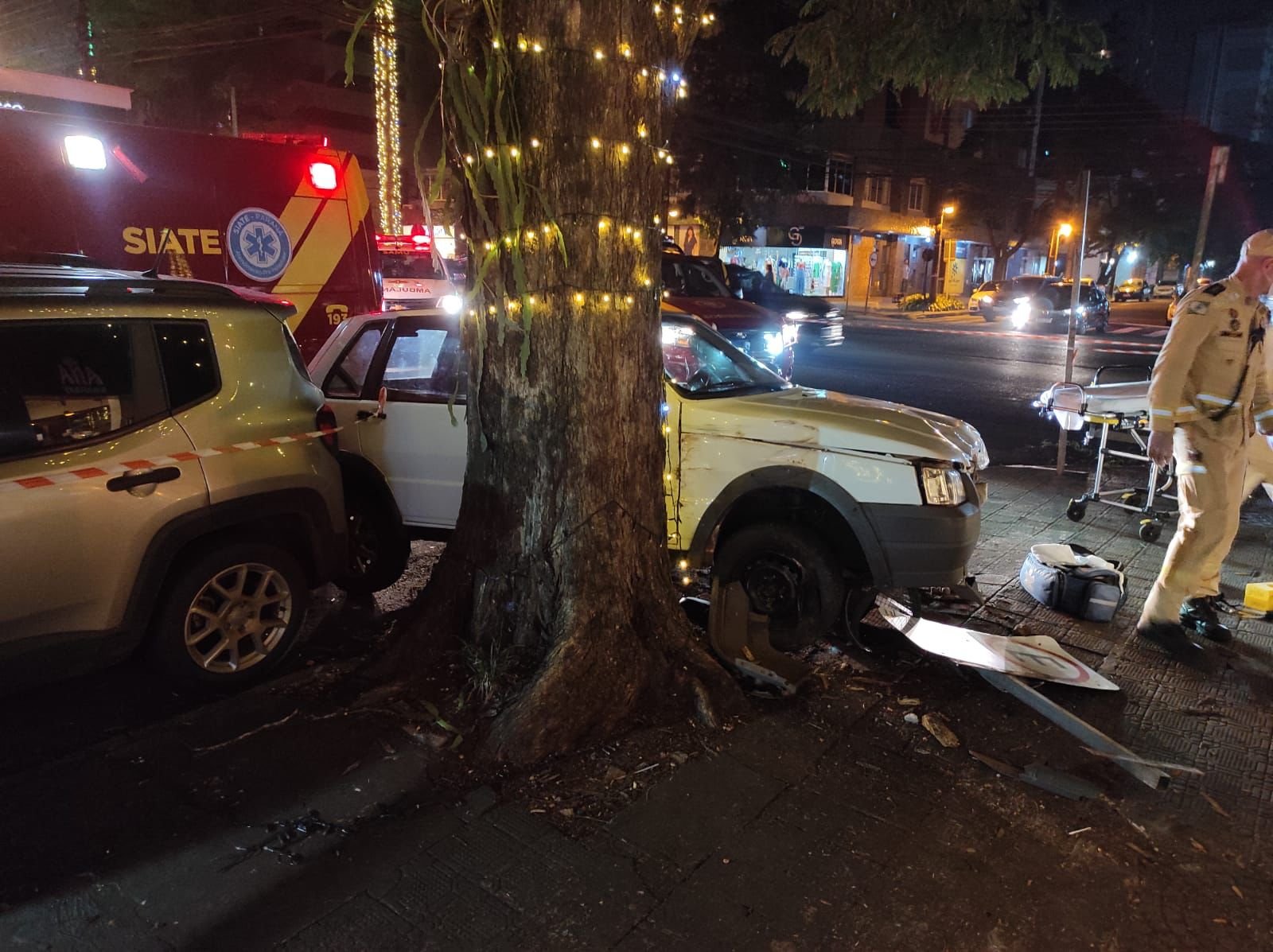 Um casal e duas crianças ficaram feridos em um acidente de trânsito impressionante registrado na área central de Maringá. A família caminhava tranquilamente pela calçada, quando no cruzamento da Avenida XV de Novembro com a Rua Piratininga, eles foram surpreendidos por um carro Fiat Uno desgovernado. O veículo invadiu a calçada e atingiu as 4 pessoas.