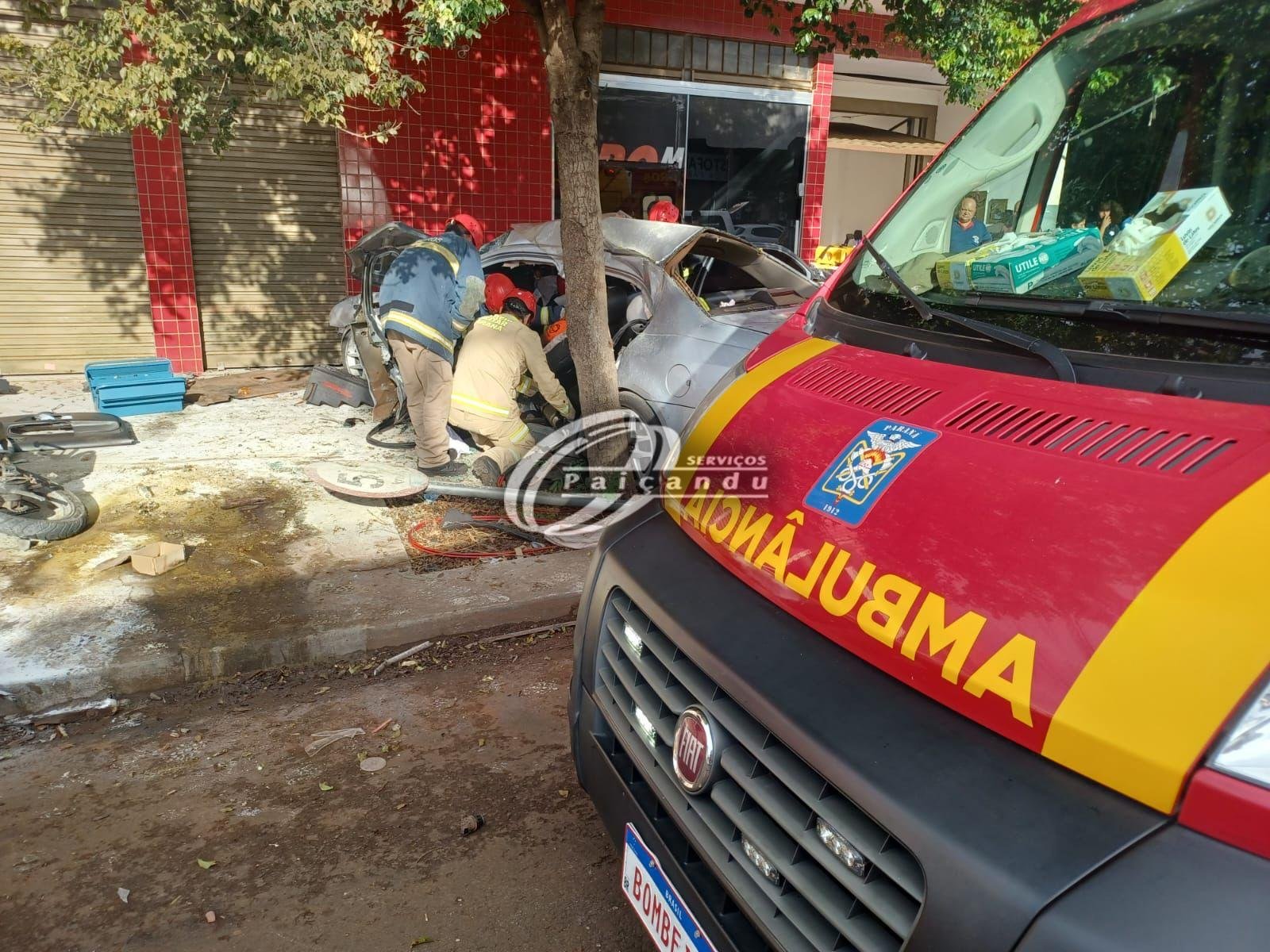 O carro chocou-se contra uma árvore e invadiu a calçada. O condutor foi resgatado pelos socorristas apresentando ferimentos moderados. Na hora do ocorrido, não havia pedestres na calçada.