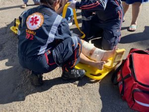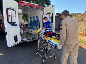 Um casal que estava na moto ficaram feridos. O motociclista de 25 anos sofreu uma fratura na perna esquerda. Já sua na namorada sofreu ferimentos considerado leves.