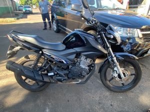 Uma colisão envolvendo uma moto e um carro, foi registrado no início da tarde deste sábado (03) no Jardim Pioneiro, em Paiçandu.