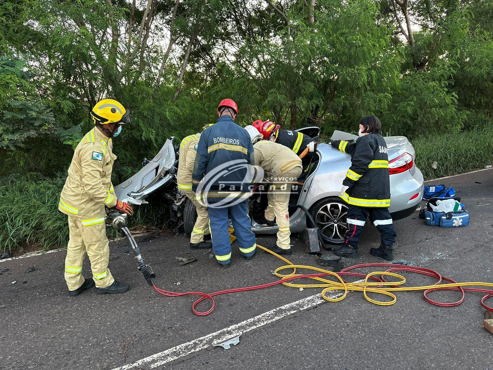 Uma quinta pessoa ficou presa nas ferragens e precisou ser resgatada pelos socorristas do Corpo de Bombeiros e da equipe médica do Serviço de Atendimento Móvel de Urgência (Samu).