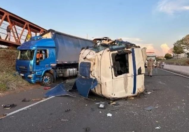 A batida, que envolveu uma carreta e um caminhão, de acordo com a Polícia Rodoviária Federal (PRF). A pista, no sentido Iguatemi, ficou completamente interditada para o resgate das vítimas.