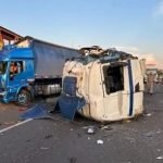 De acordo com informações de testemunhas, o caminhão estava parado no acostamento, quando o motorista da carreta bateu atrás.