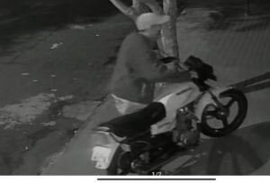 De acordo com a PM e informações da própria vítima que publicou o vídeo do furto nas redes sociais. O morador chega com a moto e logo em seguida um indivíduo comete o furto e sai empurrando a referida motocicleta.