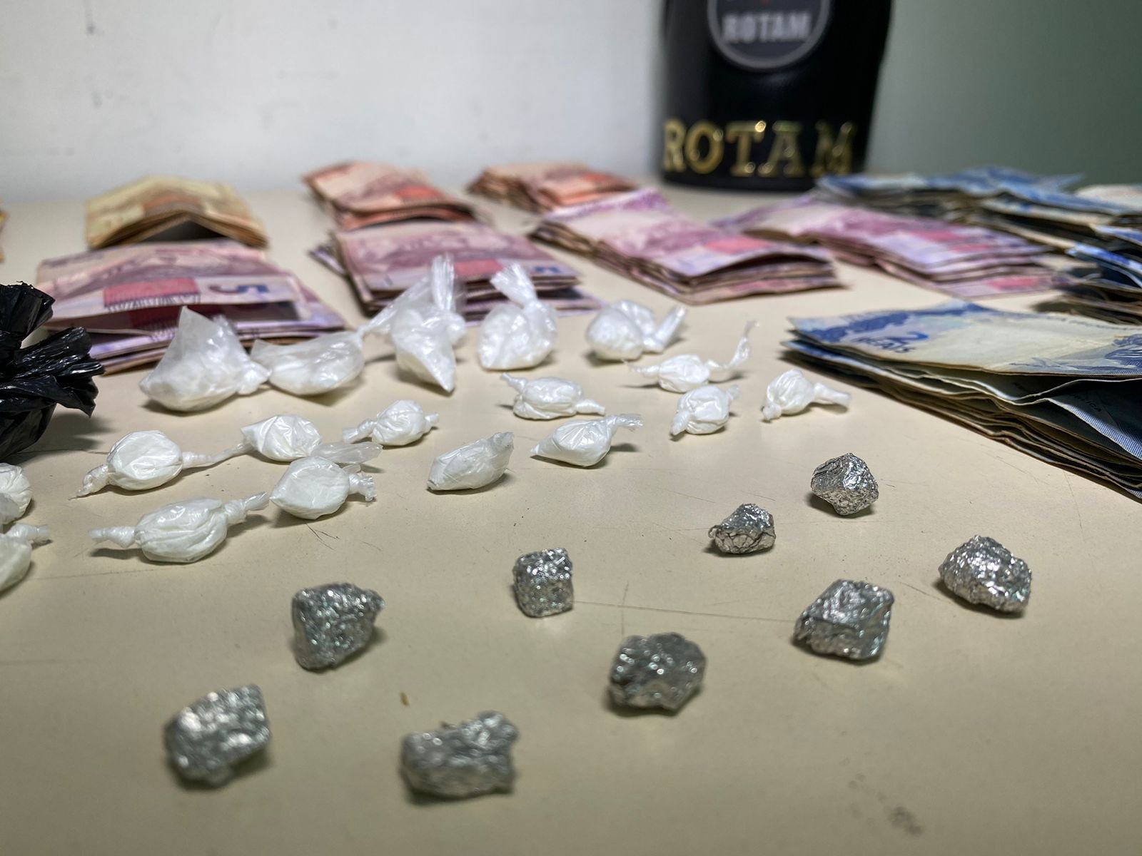 De acordo com o Cabo Vicentini, da ROTAM, a sua equipe realizava o patrulhamento no bairro, quando abordou o suspeito chegando em sua residência. Com o mesmo foi encontrado algumas buchas de cocaína, pedras de crack, e dinheiro trocado. No interior do imóvel, mas do entorpecente, dinheiro, e uma caderneta com anotações da comercialização da drogas, foram apreendidos.