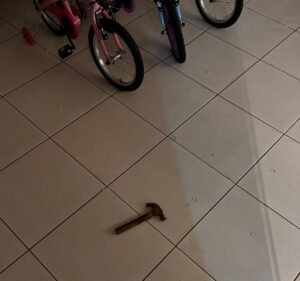 Um martelo utilizado para praticar o crime foi deixado no local.