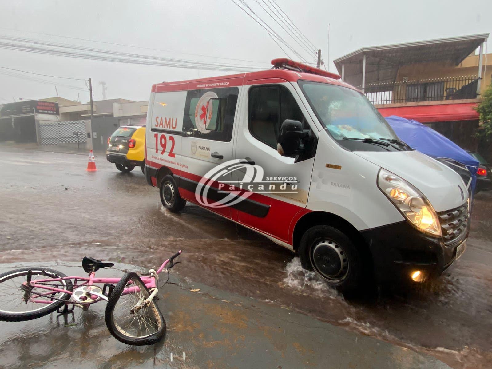Criança com bicicleta é socorrida após bater de frente com carro em Paiçandu