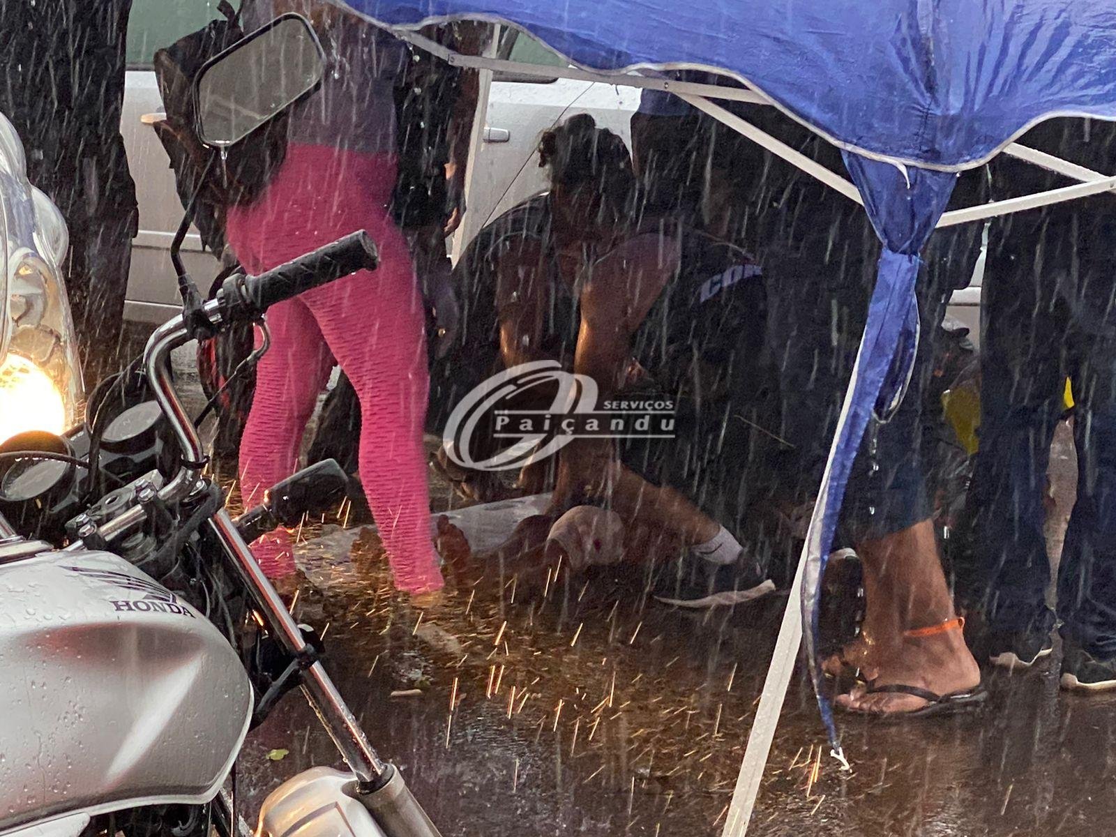 Na hora da ocorrência chovia muito, e os socorristas contaram com a ajuda de moradores que armaram uma tenda no meio da via.