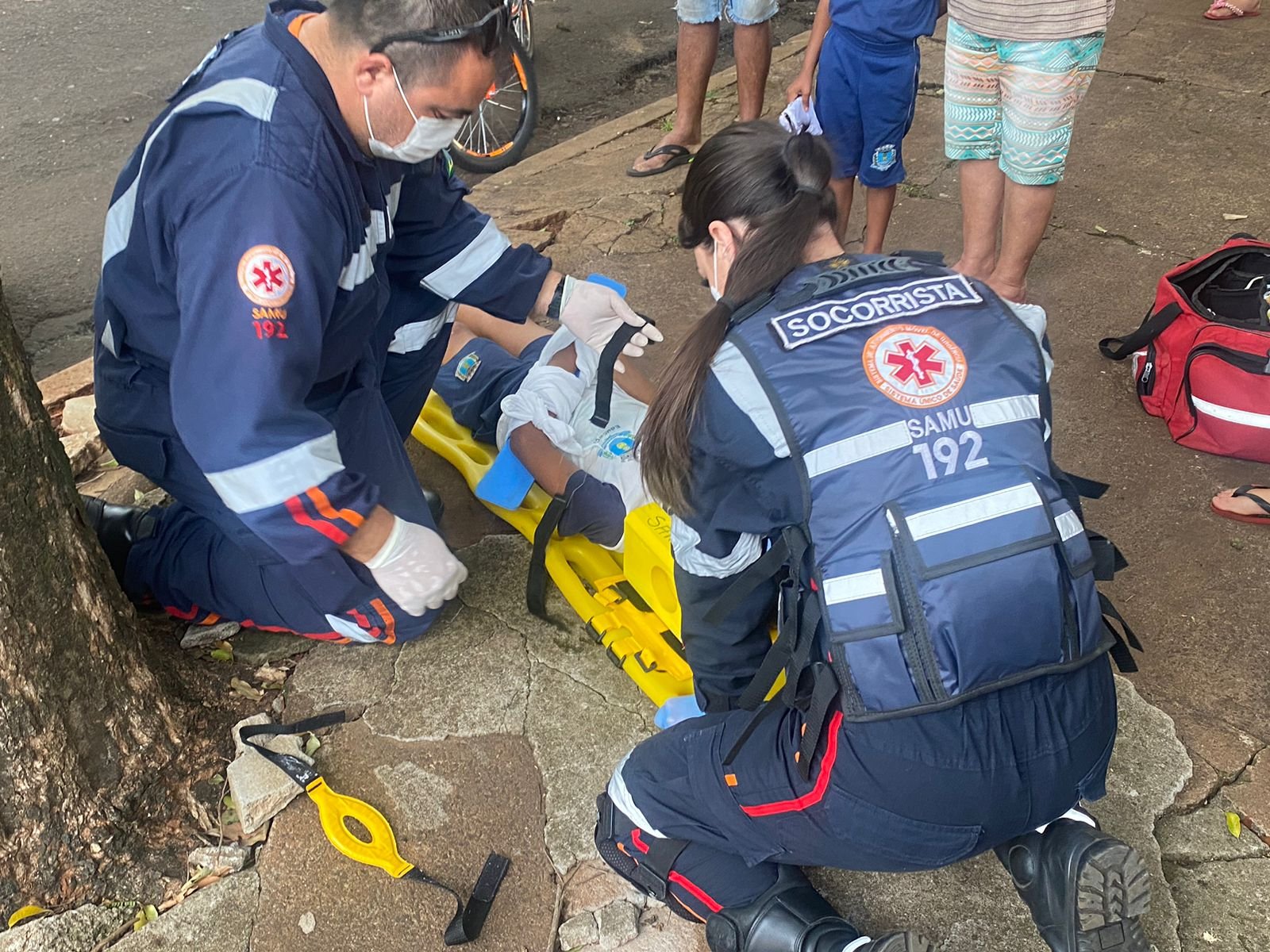 De acordo com testemunhas, duas crianças em uma bicicleta, sofreram uma queda. Um menino de 9 anos teria acabado de sair da escola e passou no CMEI para buscar o irmão de 3 anos, quando desciam pela praça Ipiranga, os freios da bicicleta não funcionaram e ambos acabaram caindo.