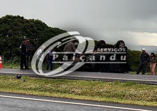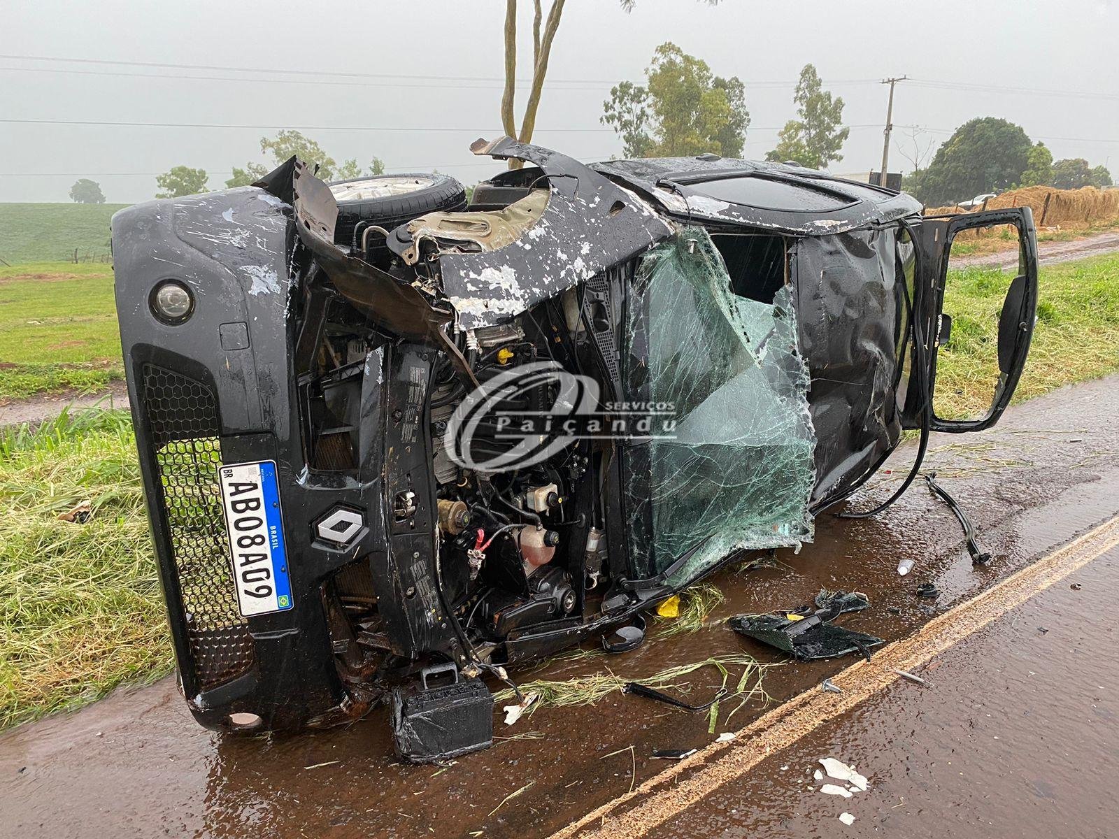 A poucos metros um outro veículo veio a capotar. O condutor seguia em direção a Maringá, quando perdeu o controle da direção e o carro capotou parando no sentido contrário da pista. O SAMU foi acionado e a vítima identificada, Ronivaldo Carvalhaes de Oliveira, 42 anos, foi encaminhada consciente e orientada, a Santa Casa de Maringá. O corpo de bombeiros deu apoio na ocorrência.