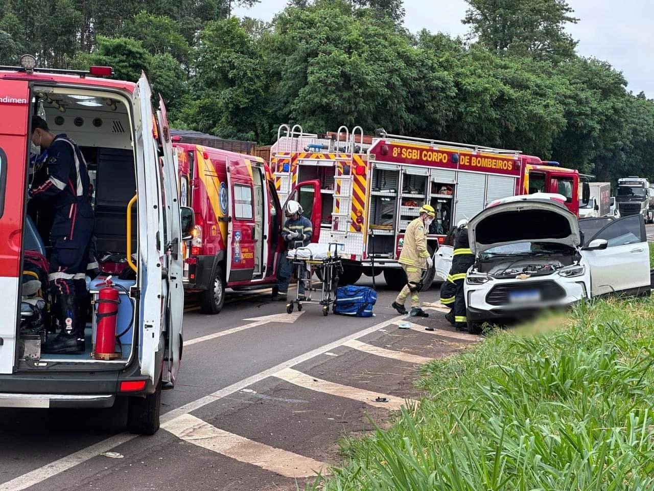 Equipes do Corpo de Bombeiros, Samu e aéreo do SAMU Maringá, estiveram no local para prestar atendimento às vítimas.
