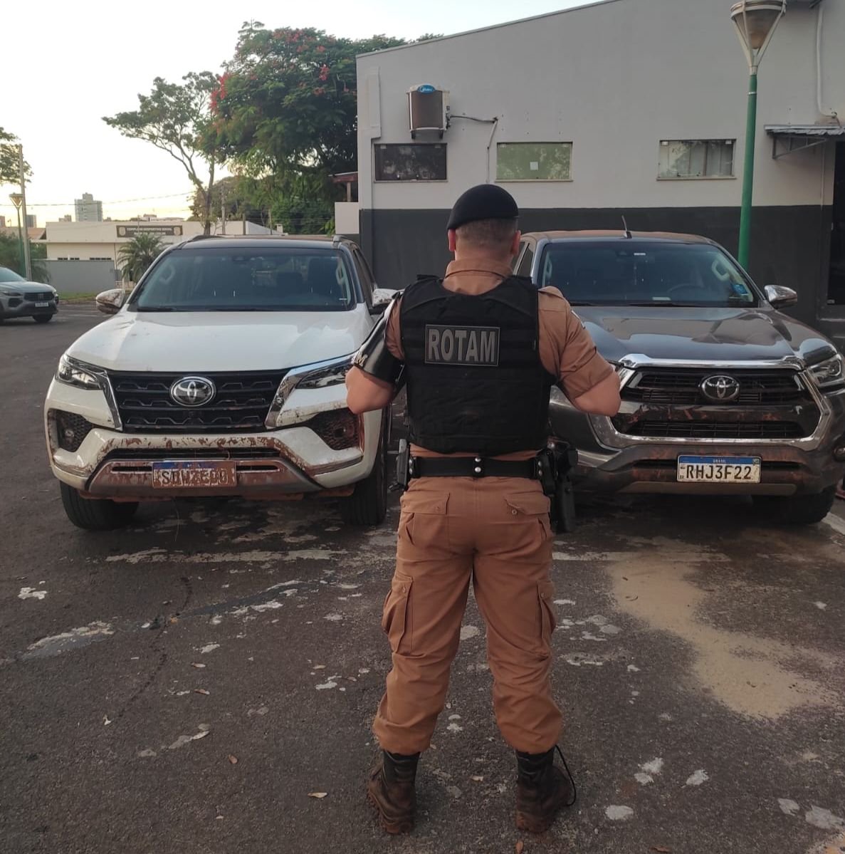 De acordo com a Policia Militar, após vários furtos de caminhonetes Hilux, registrado em Maringá, a PM, recebeu informações de que duas caminhonetes foram vista entrando em um barracão na Zona Rural, de São Jorge do Ivaí.