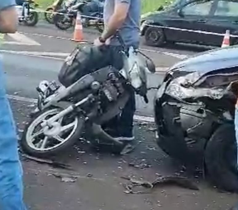 Engavetamento envolvendo cinco carros e duas motos, deixa duas mulheres feridas na rodovia entre Paiçandu e Maringá