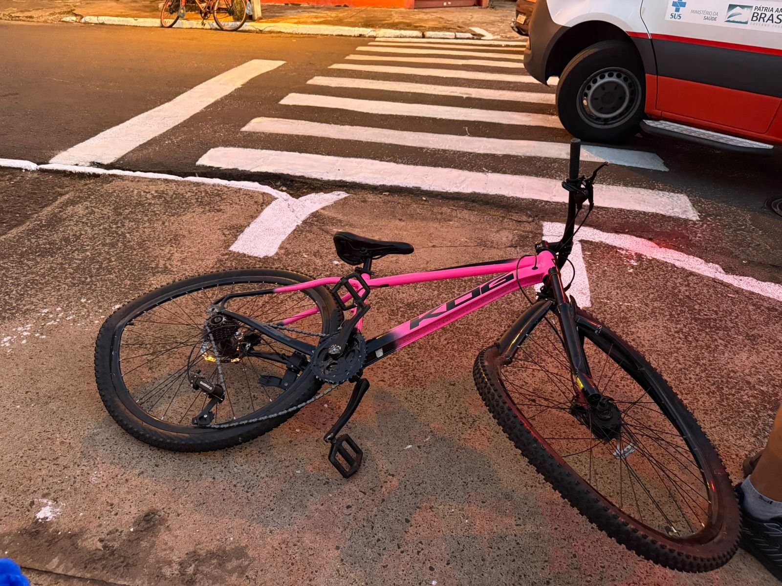 A colisão envolveu um ônibus do transporte escolar e uma bicicleta. Ambos seguiam pela Rua Joana D’Arc, sentido bairro/centro, quando o motorista do ônibus realizou uma conversão à direita e acabou atingindo a ciclista.