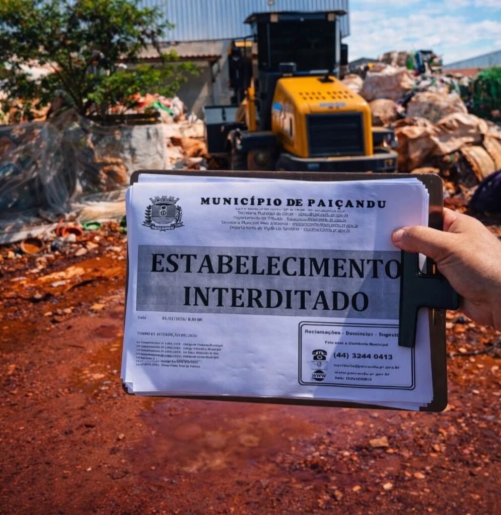 Uma operação de fiscalização realizada nesta semana no Parque Laranjeiras, em Paiçandu, resultou na interdição de um barracão de reciclagem que vinha sendo utilizado de forma irregular como depósito de galões de agrotóxicos. A ação foi conduzida de forma integrada pela Prefeitura Municipal, ADAPAR e Polícia Ambiental.