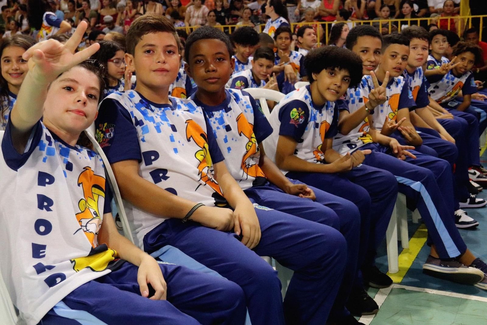 Os estudantes participaram da formatura do Programa Educacional de Resistência às Drogas (PROERD). O projeto é uma parceria entre a Prefeitura de Paiçandu, por meio da Fundação de Educação. Além de trabalhar a prevenção contra o uso de drogas, a iniciativa reforça a autoestima e contribui para a resolução de conflitos sem violência.