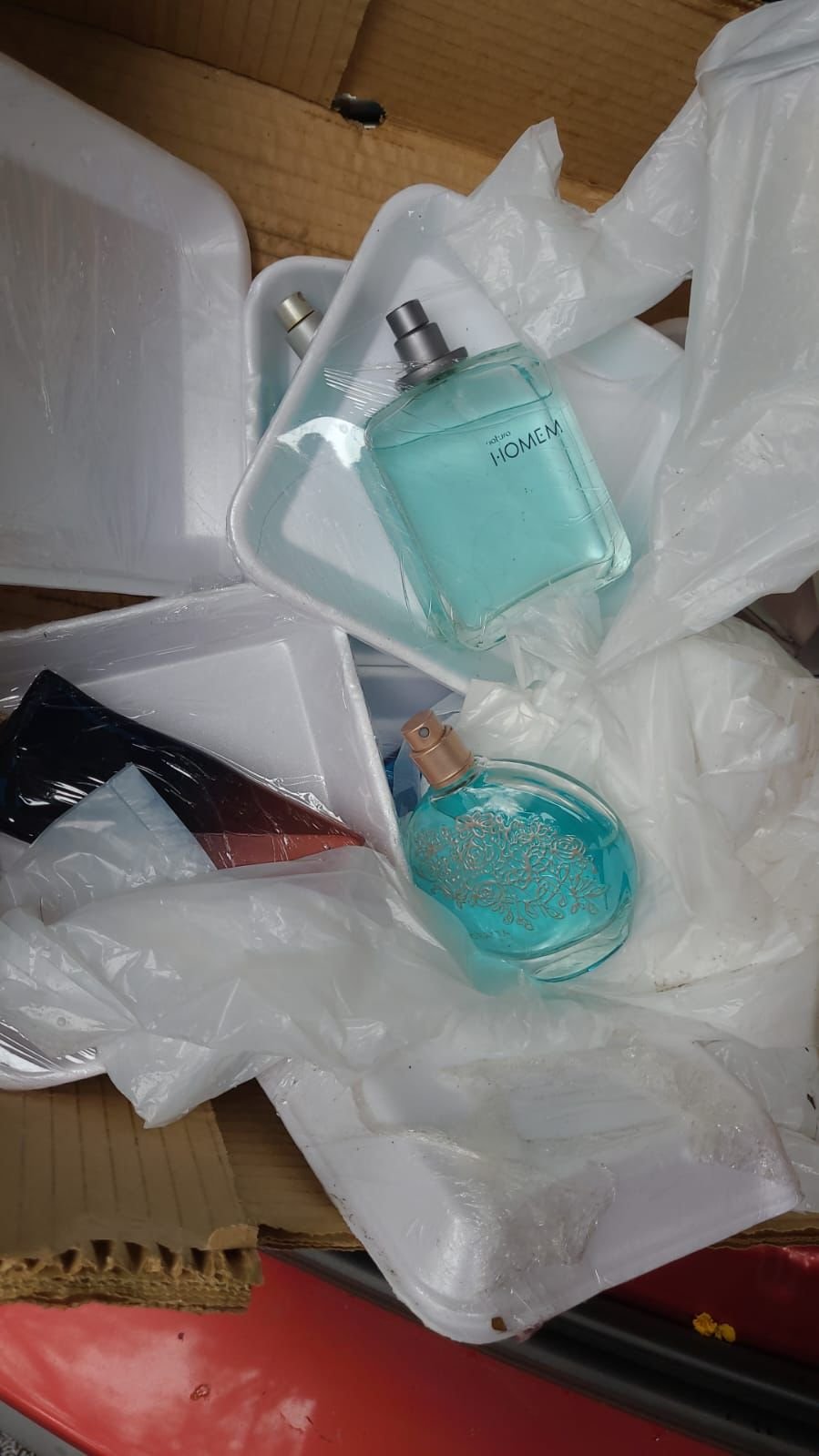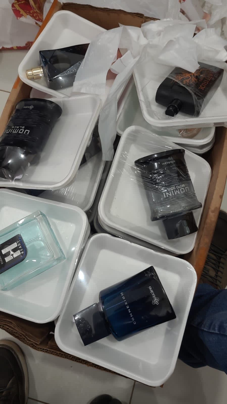Os perfumes estavam sendo comercializados abaixo do preço de mercado e em condições inadequadas. A equipe policial chegou aos suspeitos após uma jovem borrifar o líquido no braço e passar mal.