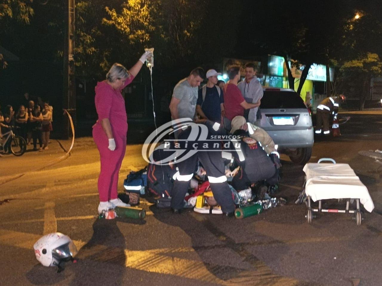 Na noite desta segunda-feira (24), um motociclista de 21 anos, sofreu ferimentos gravíssimos e precisou ser intubado pelos paramédicos do Samu e Corpo de Bombeiros, após se envolver em um acidente, no Contorno Sul de Maringá. No local foi apurado que, LUCAS MIGUEL na companhia de outro rapaz, seguiam sentido Sarandi. Na região do Jardim Bertioga, o motociclista foi surpreendido por um carro que trafegava em sentido contrário, porém, o condutor realizou uma conversão no meio da via, sem dar a preferência ao motociclista.
