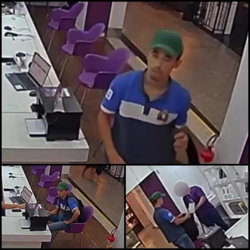 No vídeo também é possível ver quando um outro funcionário percebe a ação, mas não reage ao assalto. Ao fim, o criminoso fugiu do local com seis aparelhos Iphones.