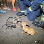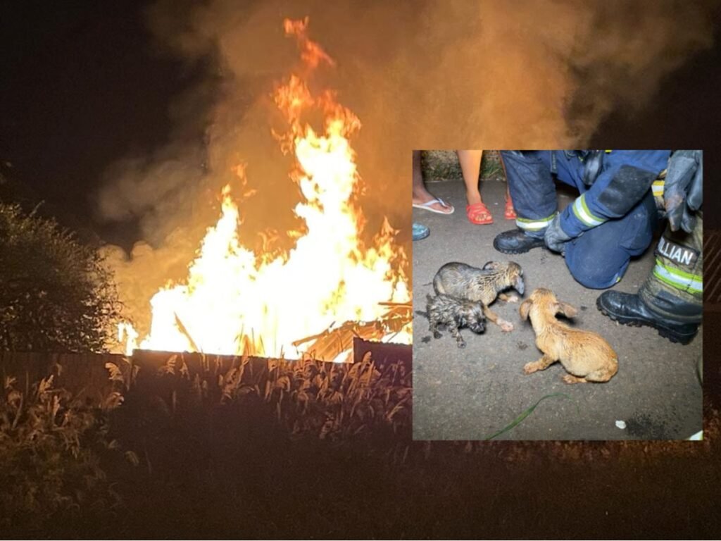 No momento em que a equipe do Corpo de Bombeiros realizava o trabalho de R escaldo, quatro cachorrinhos foram encontrados no fundo da residência. Por sorte as chamas não atingiram os filhotes. Eles foram resgatados e entre a moradora.