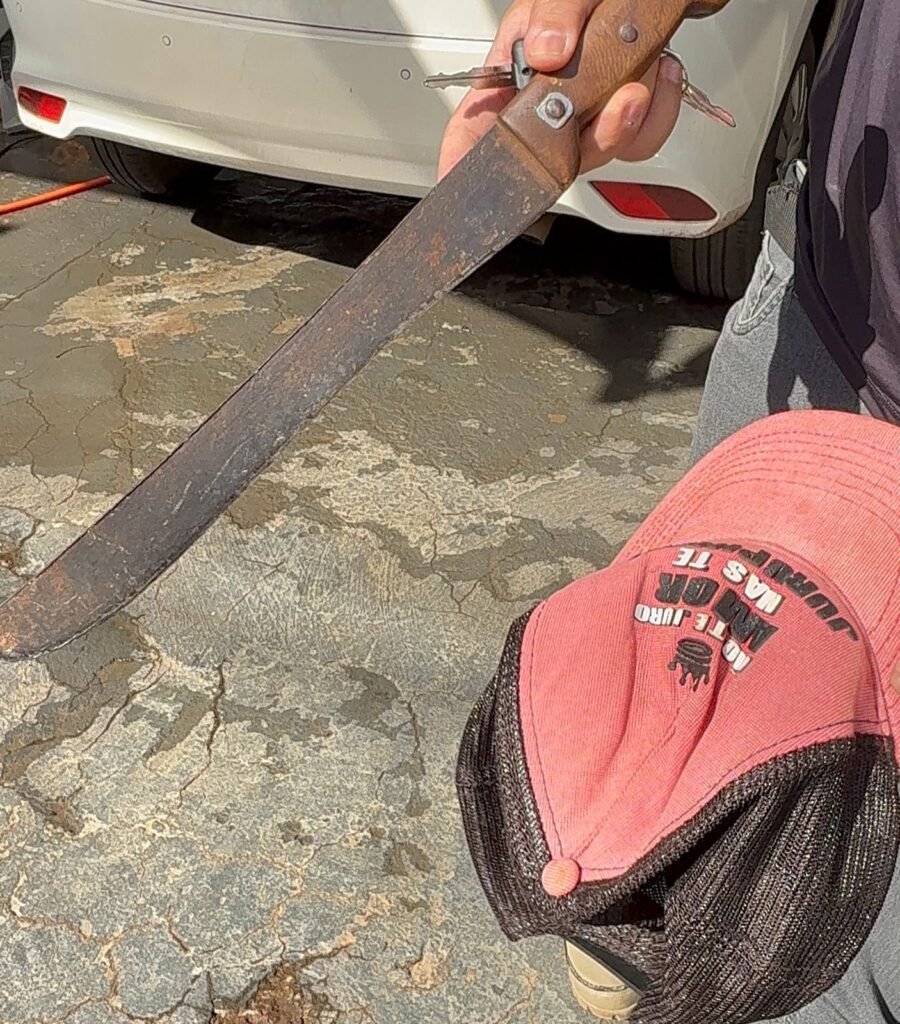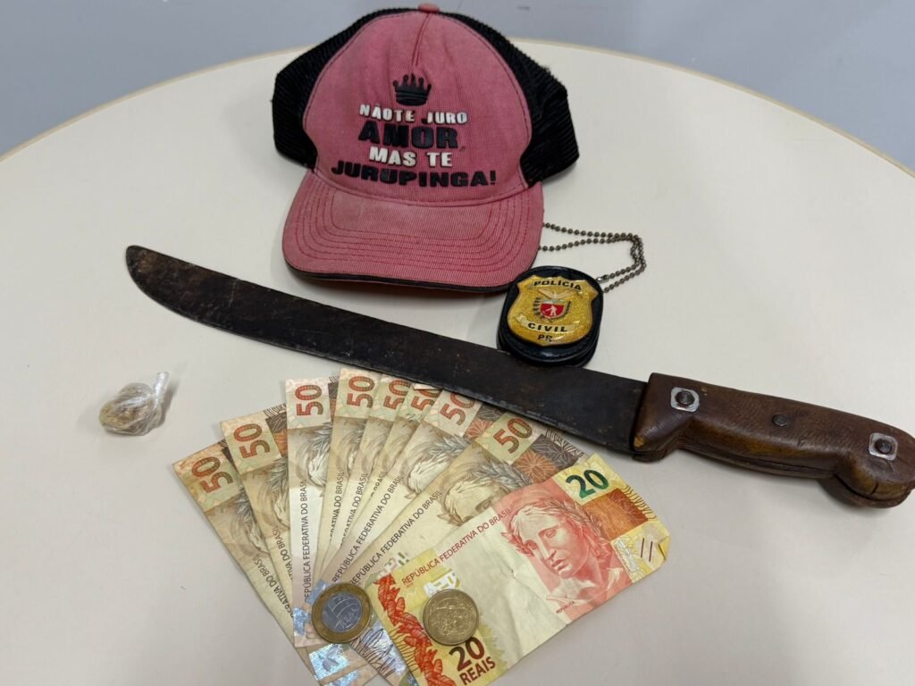 Com ele, foram encontrados um boné semelhante ao utilizado nas imagens, o facão, dinheiro em espécie e pedras de crack.