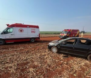 Equipes do SAMU e Corpo de Bombeiros foram acionadas para um acidente registrado por volta de 14hs desta quinta-feira (12) na área rural de Paiçandu.