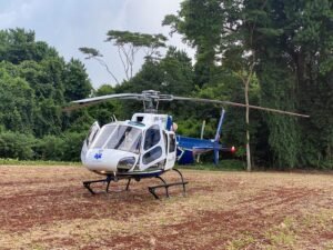 A vítima estava consciente e orientada e foi encaminhada de helicóptero, ao Hospital Universitário do local.