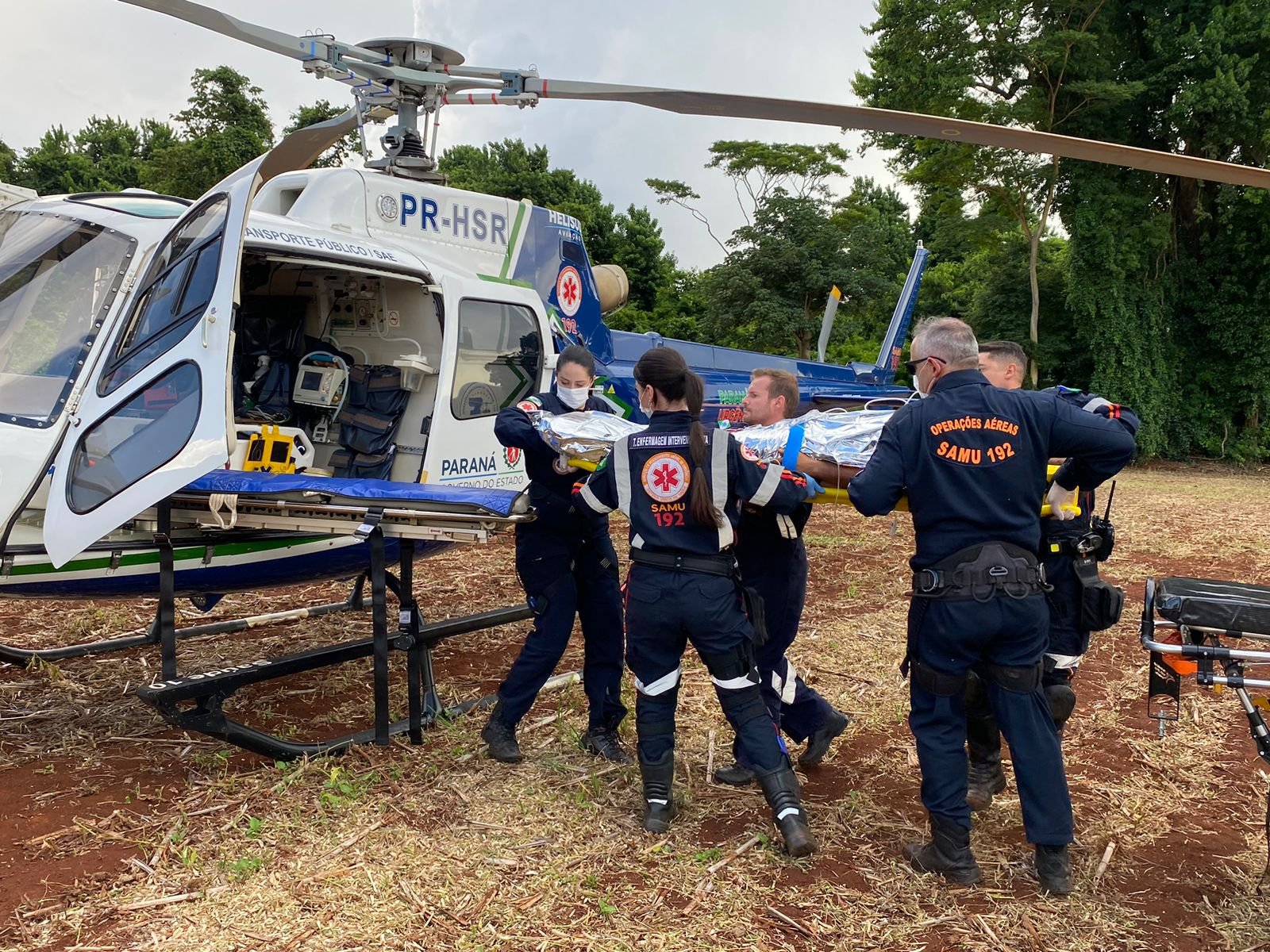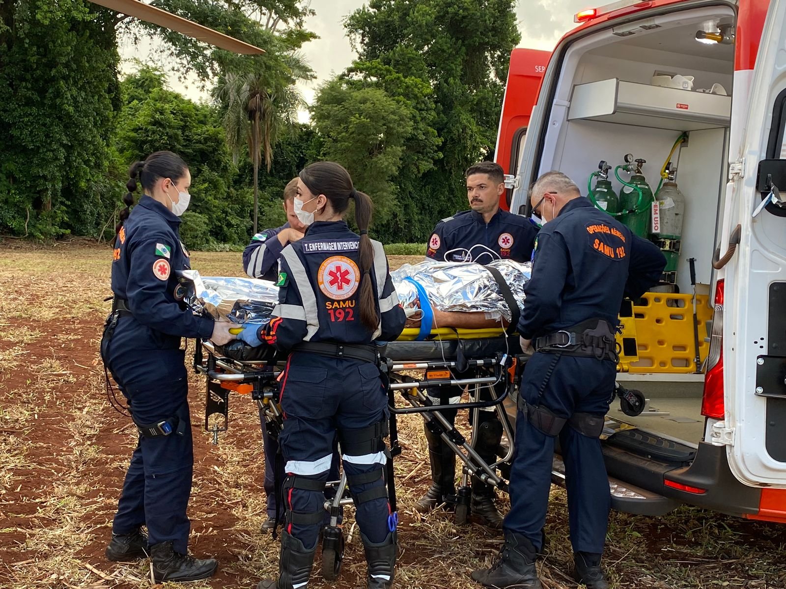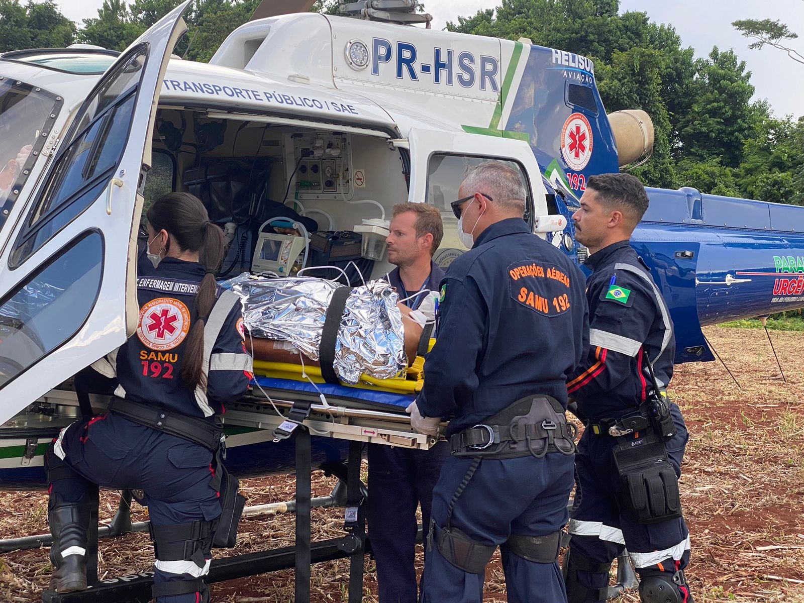 A vítima estava consciente e orientada e foi encaminhada de helicóptero, ao Hospital Universitário do local.