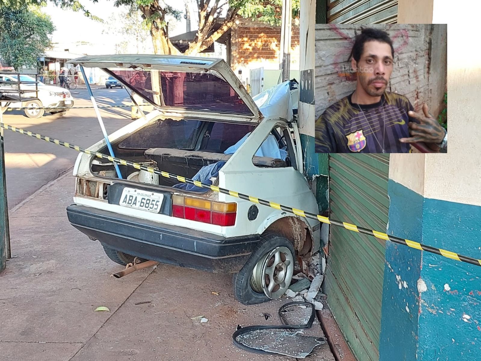 Ele estava de passageiro de um VW Gol, quando o condutor perdeu o controle da direção, atropelou um pedestre em um ponto de ônibus e na sequência, bateu contra a parede de um estabelecimento comercial.