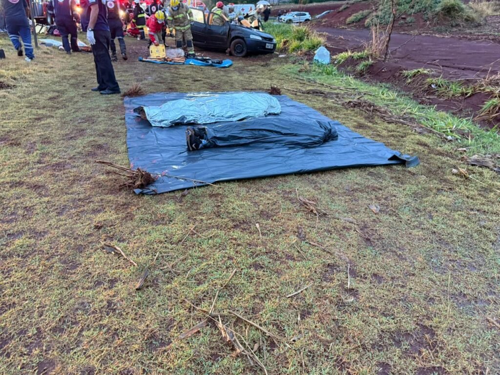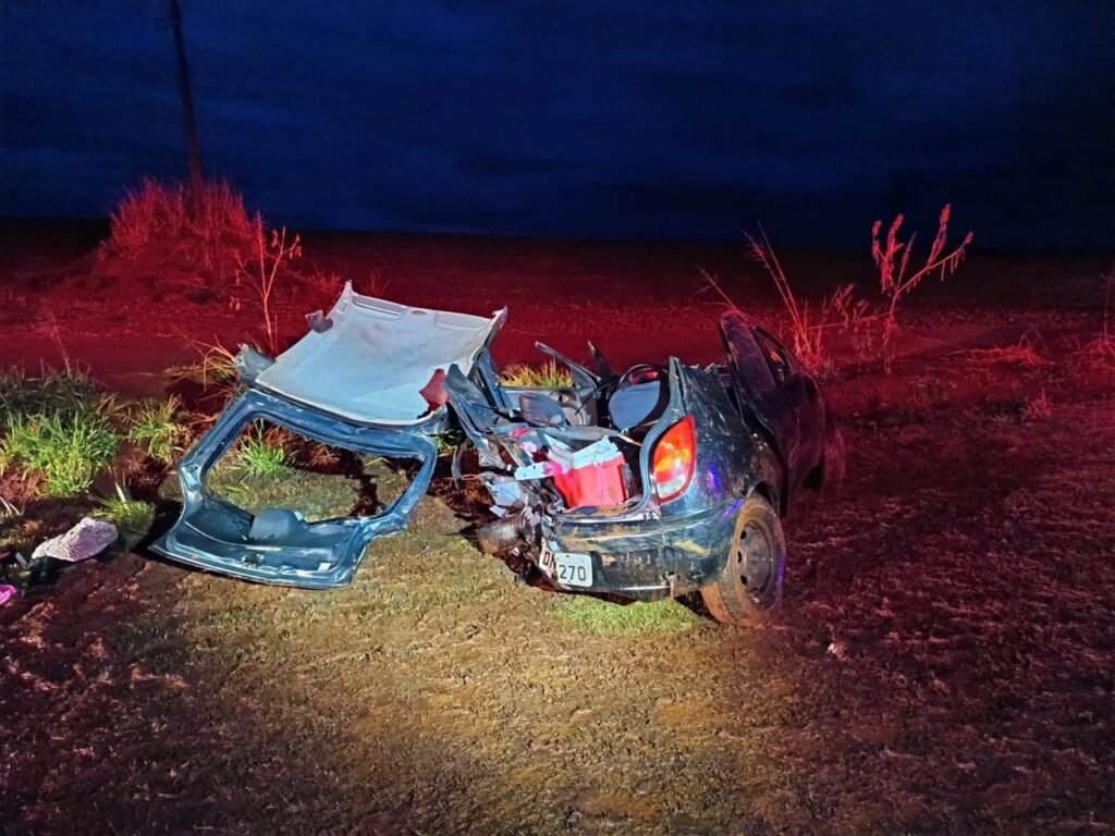 De acordo com informações apuradas no local, uma caminhonete S10 colidiu violentamente contra um veículo Celta. Com o impacto, o carro foi arremessado a cerca de seis metros para fora da pista, parando às margens da rodovia.