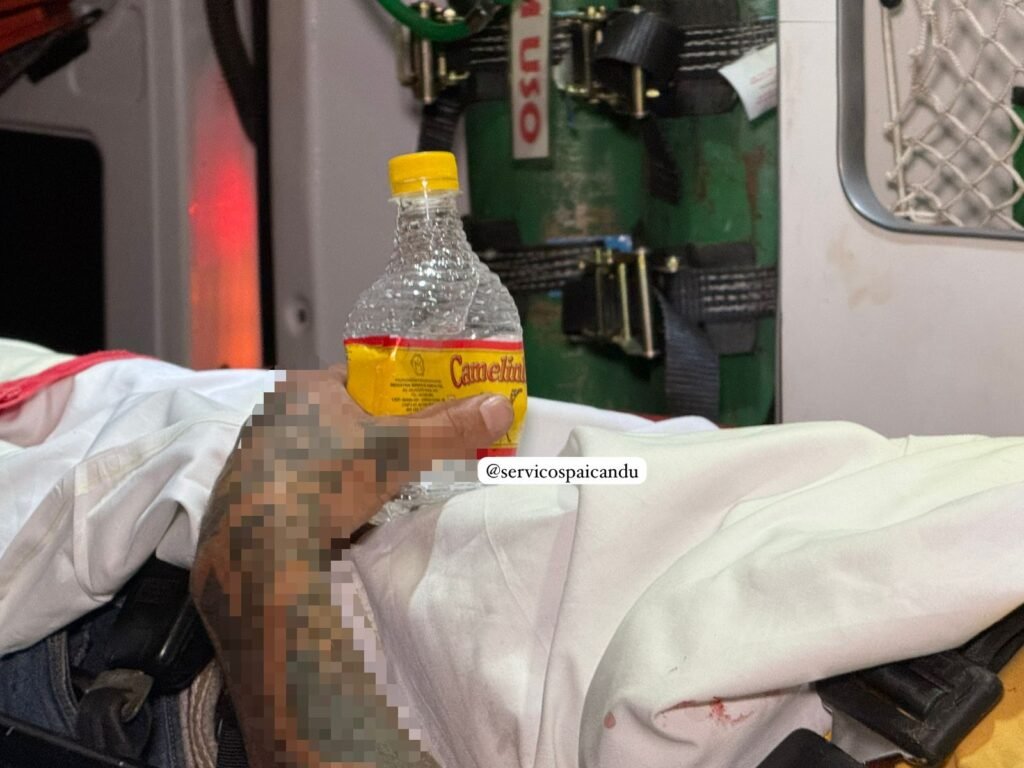 Segundo os socorristas, o homem apresentava sinais de embriaguez e estava segurando um litro de bebida alcoólica. Bastante confuso, ele relatou que teria sido atropelado por uma motocicleta, porém nenhuma moto ou outro motociclista ferido foi encontrado no local.