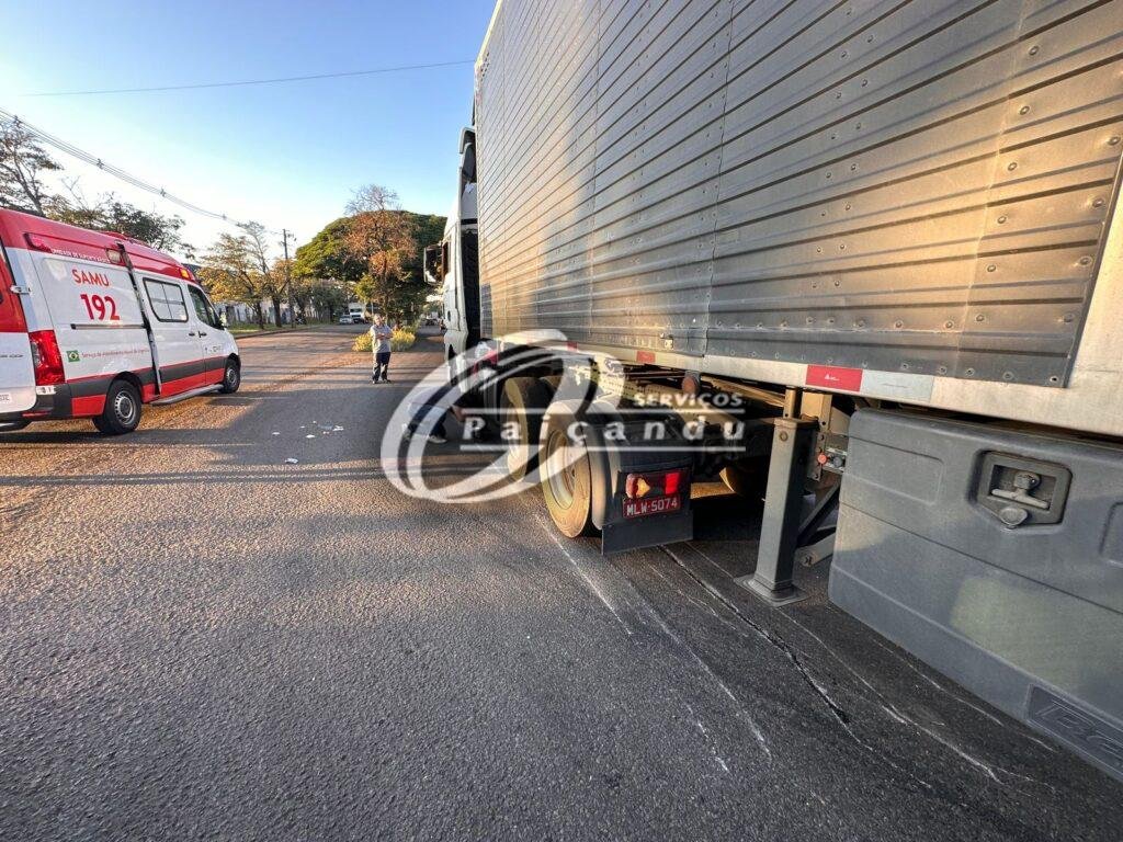 Mediante a informações coletada no local, a mulher seguia de moto sentido a Maringá, quando no cruzamento do Café Basa, um caminhoneiro que conduzia uma carreta ao cruzar a marginal para ter acesso ao Parque Industrial, aconteceu a batida.