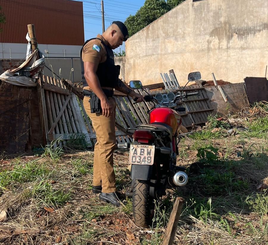 A moto foi localizada na manhã desta quarta-feira (11) em um terreno baldio, na Rua Alcides Domingues Ramos, Jardim Bela Vista 2 em Paiçandu.