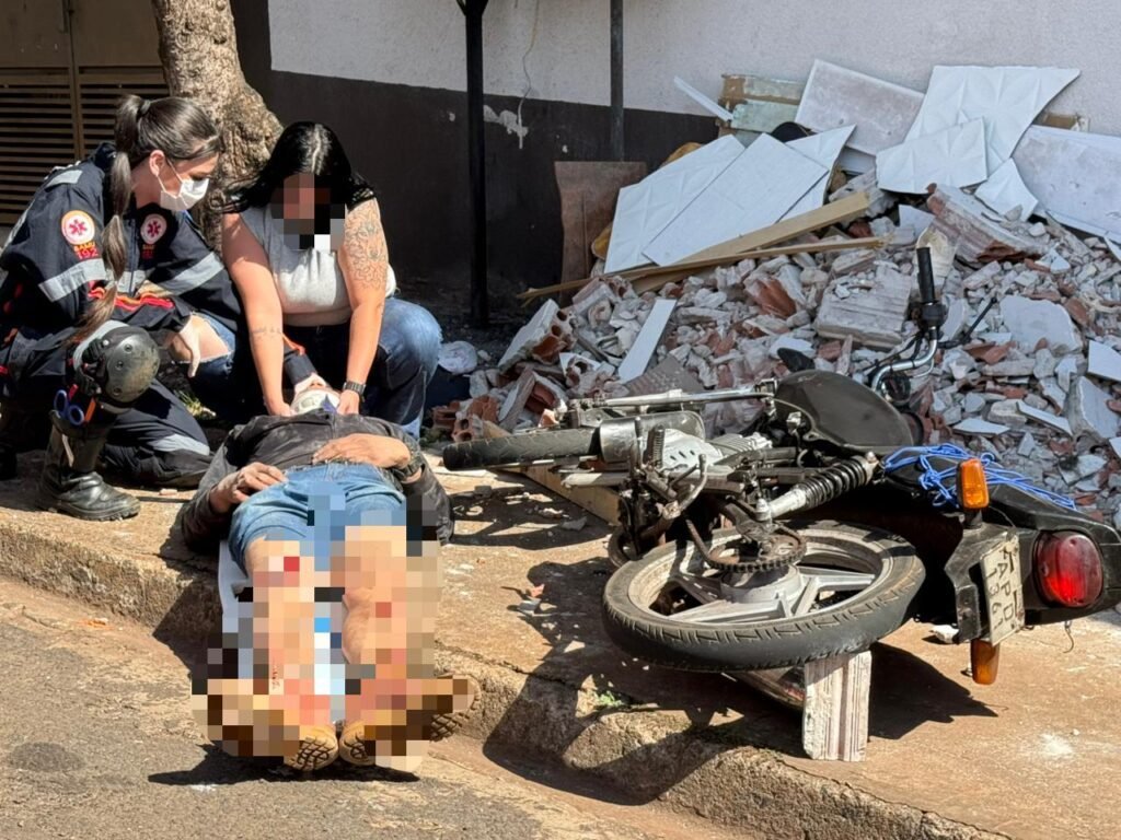 Um motociclista de 38 anos, natural da Venezuela, ficou ferido após bater contra a parede de um estabelecimento comercial na região do Jardim Alvorada, em Paiçandu. O acidente ocorreu no início da tarde deste sábado (2), na Avenida Ivaí, quando o condutor tentou fazer uma conversão para acessar a Rua Tocantins e perdeu o controle da direção.