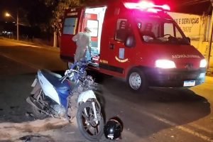 Ao passar por lombada motociclista perde o controle e colide violentamente em camionete estacionada em Paiçandu