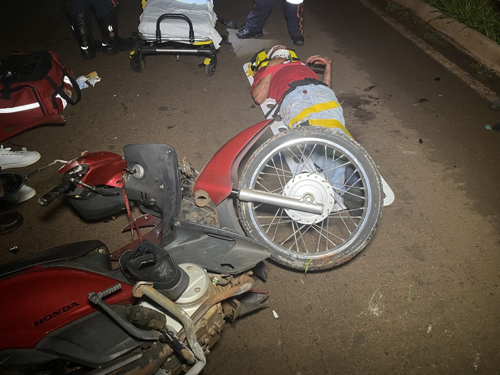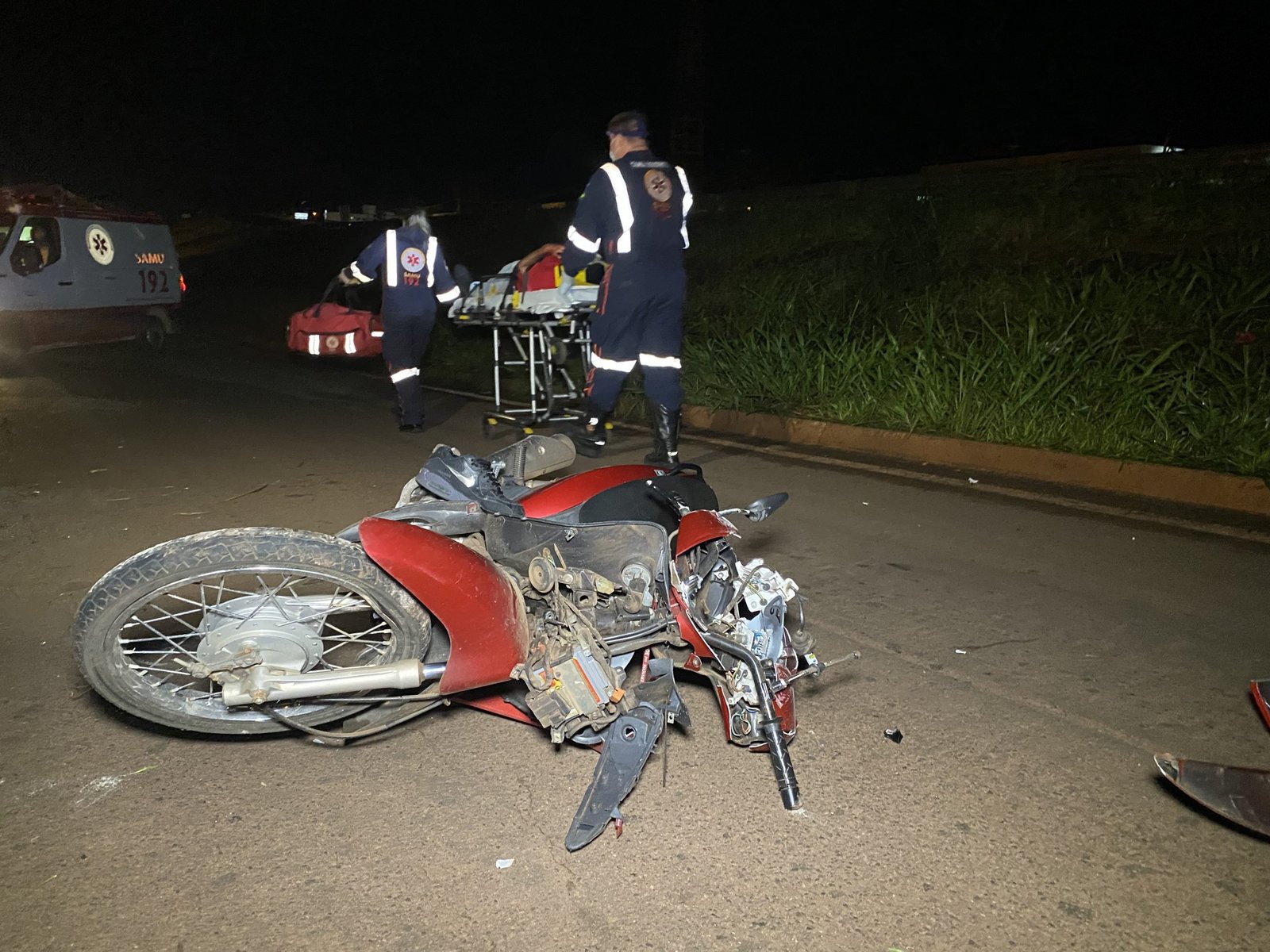 Matheus Rafael da Silva, 18 anos, foi socorrido com ferimento grave na face, após sofrer uma queda de moto no final da noite deste domingo (15) em Paiçandu.