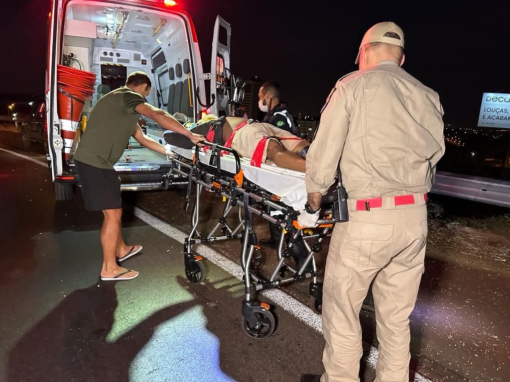 Maicon, de 28 anos de idade, foi socorrido em estado grave após perder o controle da moto em que conduzia e bater contra o guard rail, no entroncamento das rodovias PR-317 e PR-323 em Maringá.